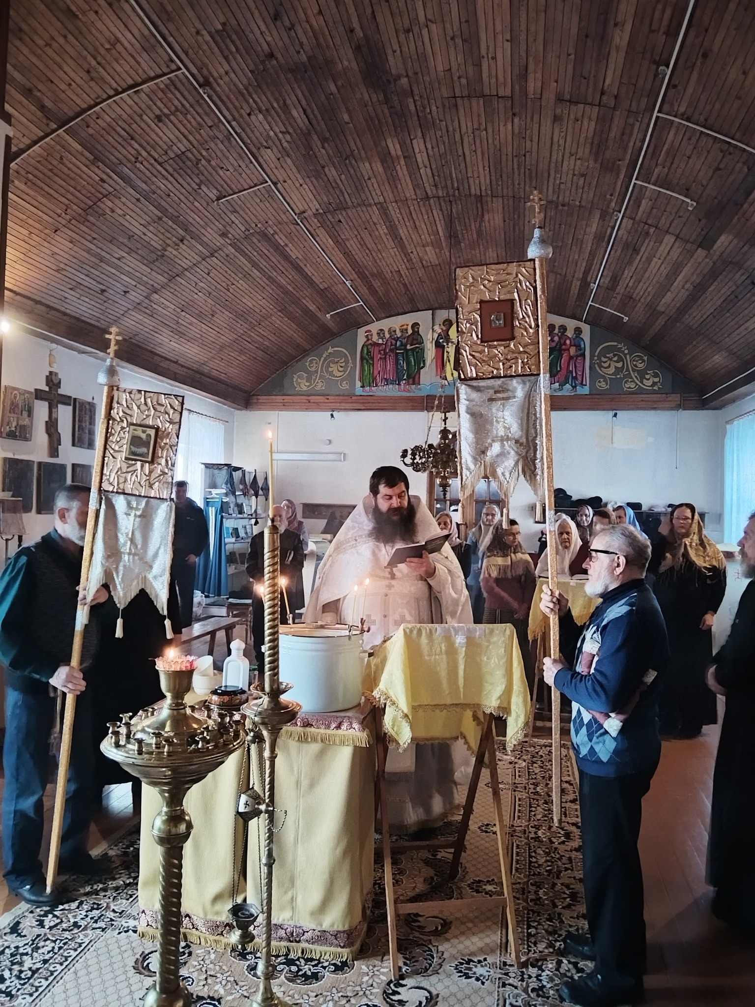 На Божественной литургии и на водосвятном молебне шла молитва за Россию и Беларусь.